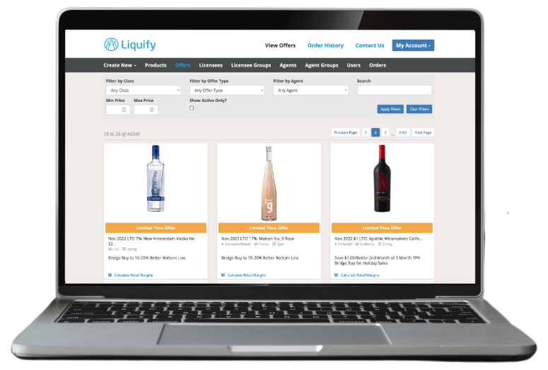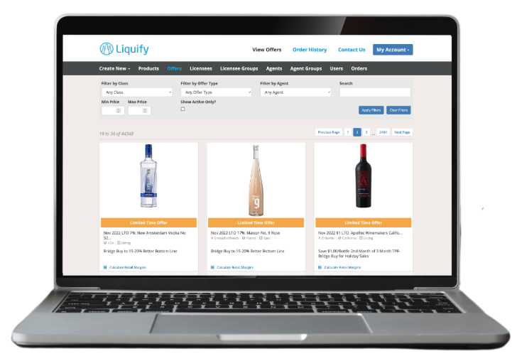 Liquify is the ultimate wholesale alcohol supply management platform; it allows buyers to easily and efficiently discover and order beverage alcohol products from hundreds of BC suppliers through a single platform without having to call or email companies or reps, or search for their deals through stacks of flyers and emails.